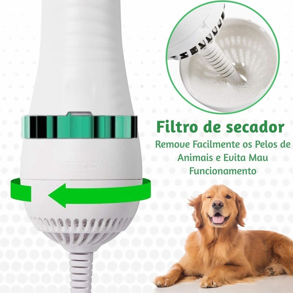 Especificamente desenvolvido para ser usado em cães e gatos, este secador é uma ferramenta essencial para manter a higiene e a aparência do seu pet. Confira abaixo as especificações detalhadas do produto: