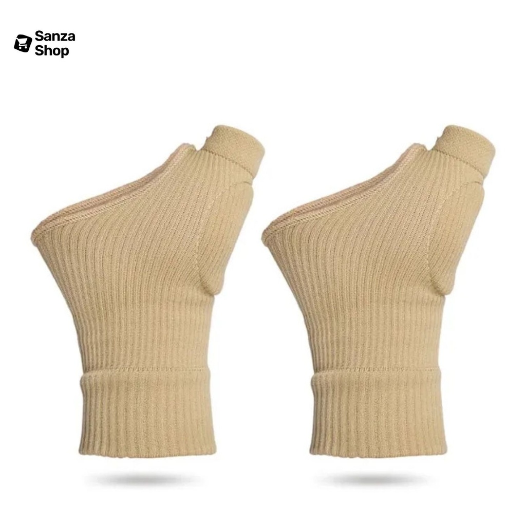 1 par de luvas de compressão com suporte para polegar e pulso (cor bege)