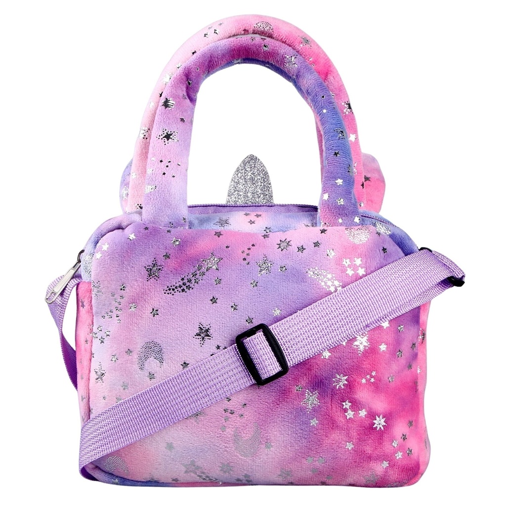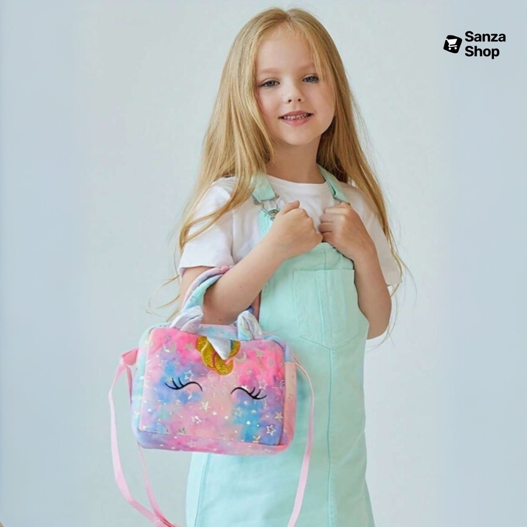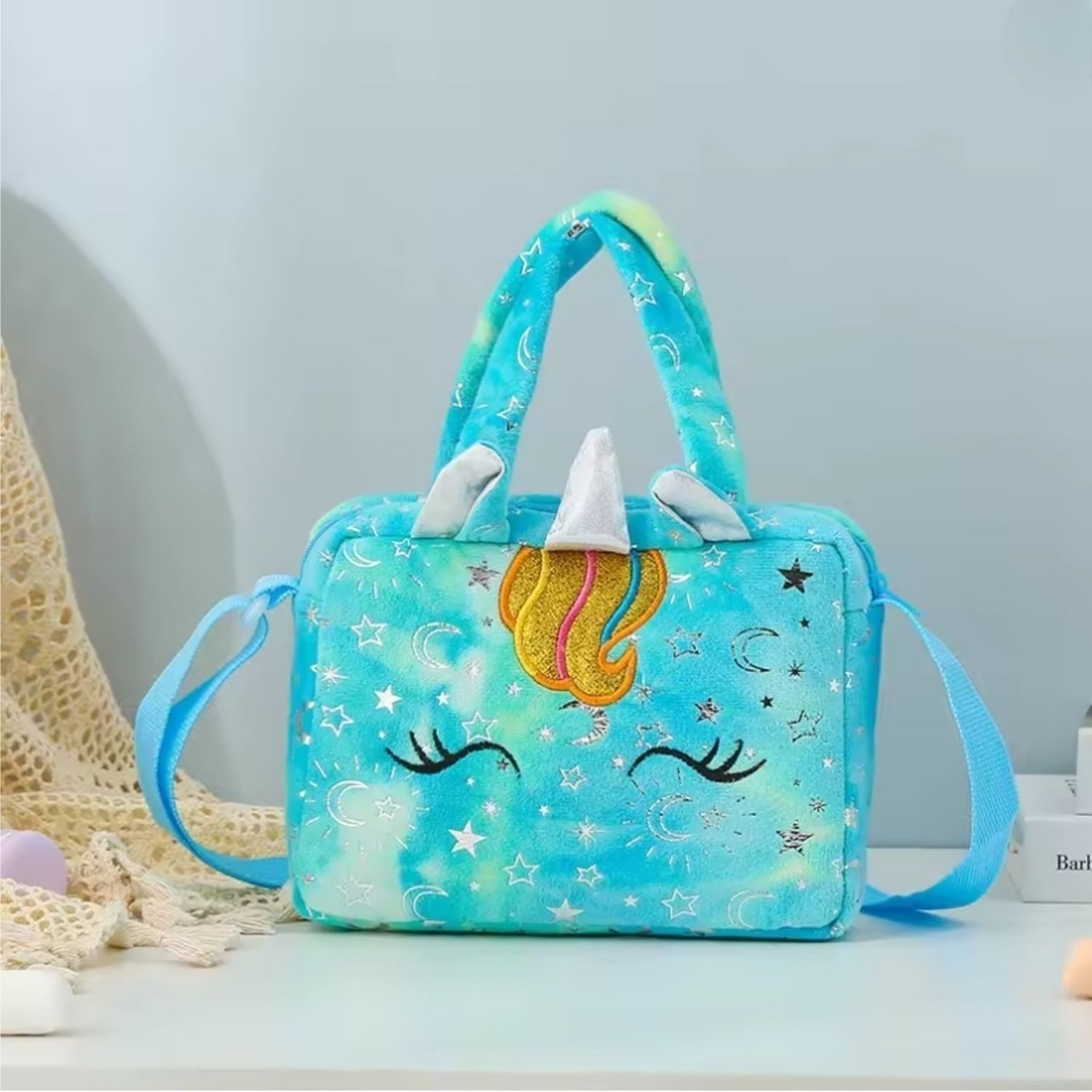 • Bolsinha Unicórnio 3D (pelúcia) – Cores: Rosa, Verde, Roxo com Rosa